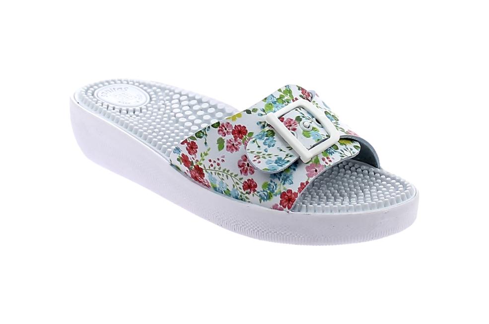 Klapki posiadają innowacyjną wkładkę, której wypustki masują receptory stóp oraz pomagają poprawić ukrwienie.